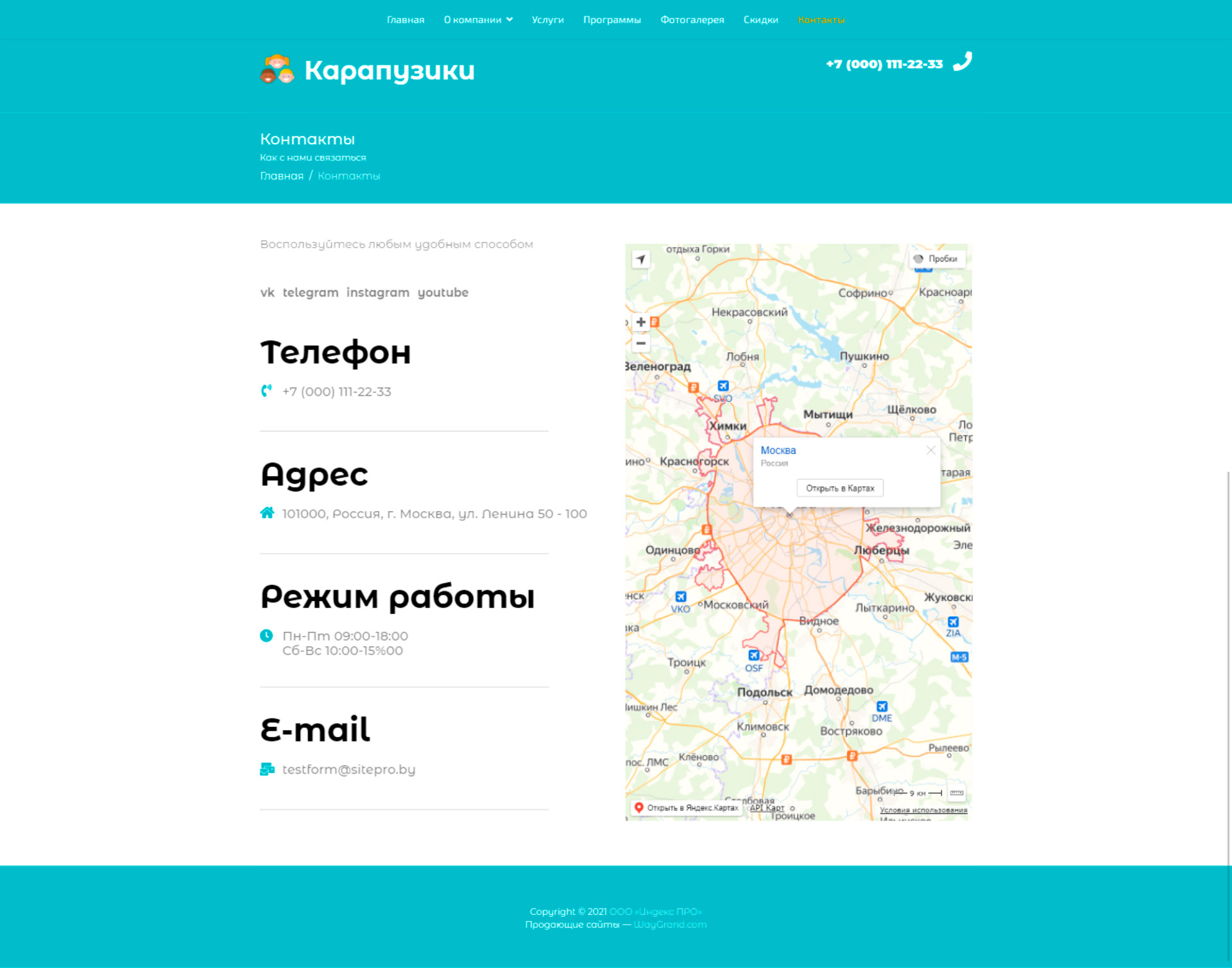Закажите готовый продающий сайт визитка #0419301 в Барнауле за 5-7 дня «под ключ»: свёрстан, отрисован и готов к рекламе. Тематика шаблона «Частный детский центр».