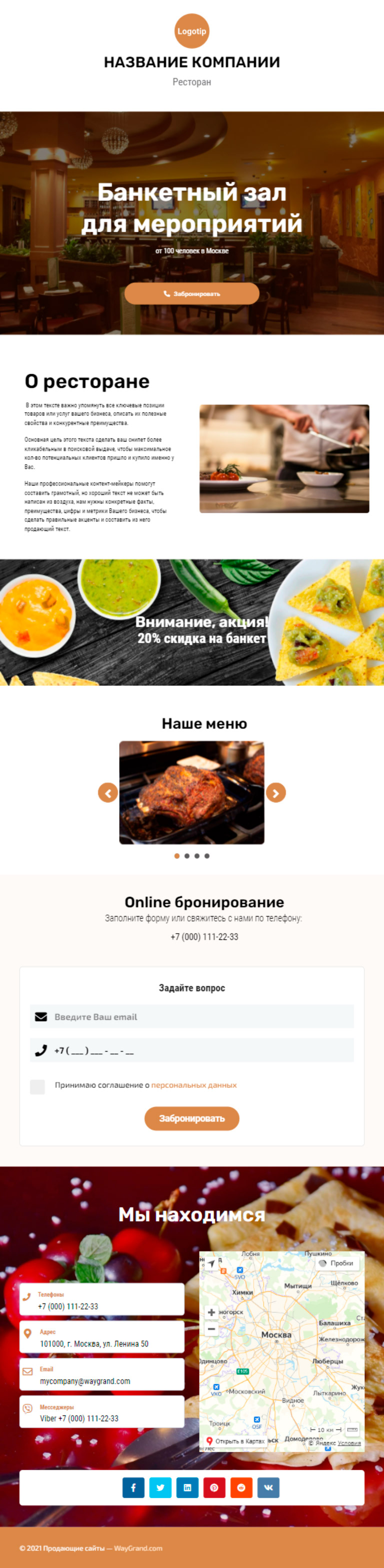 Закажите готовый продающий сайт визитка #0449101 в Барнауле за 5-7 дня «под ключ»: свёрстан, отрисован и готов к рекламе. Тематика шаблона «Банкетный зал для мероприятий».