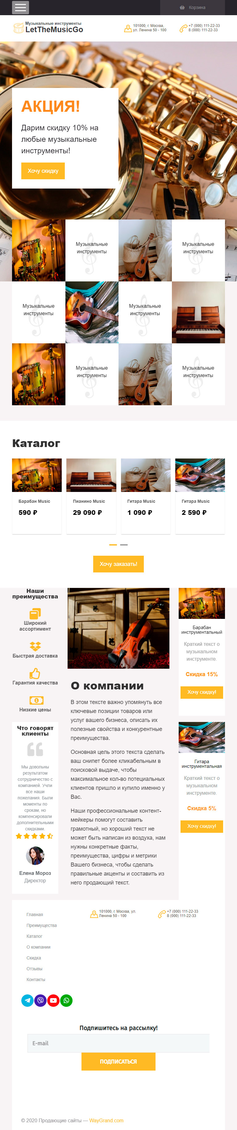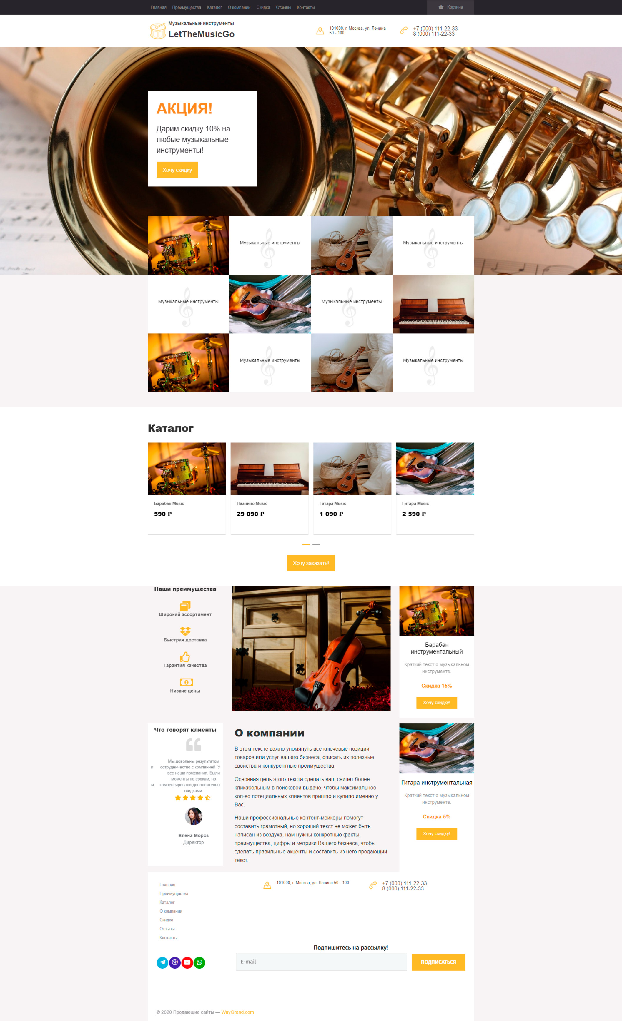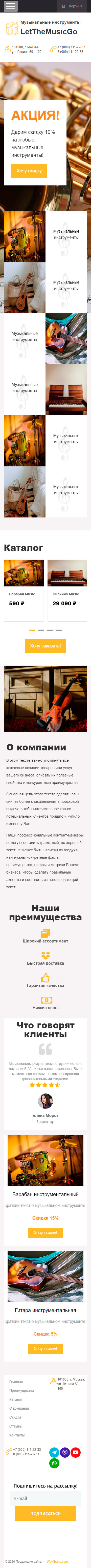 Закажите готовый продающий сайт лендинг #0710201 в Барнауле за 1-3 дня «под ключ»: свёрстан, отрисован и готов к рекламе. Тематика шаблона «Музыкальные инструменты».
