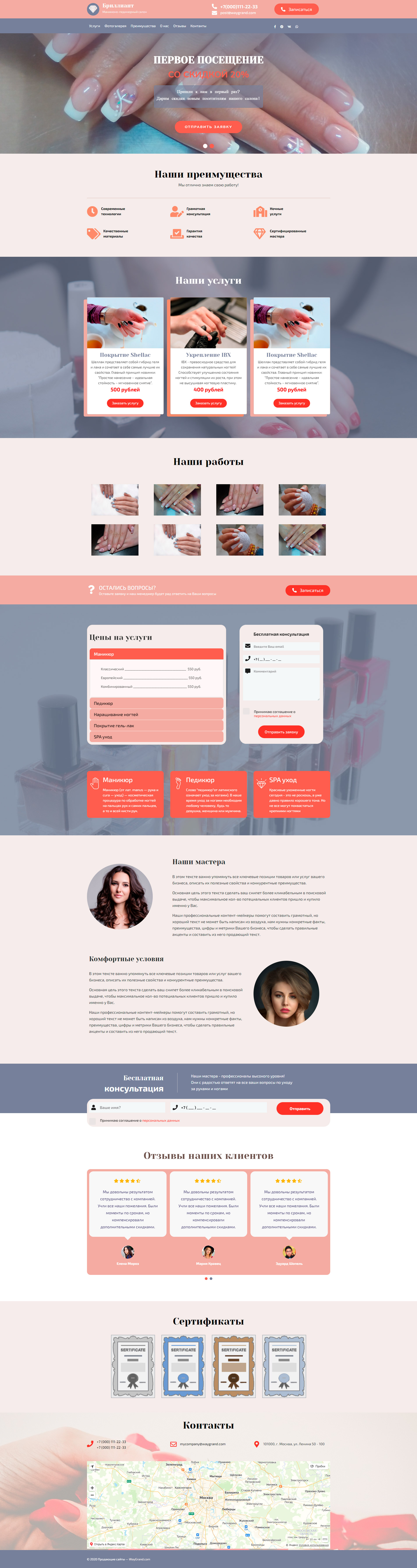 Закажите готовый продающий сайт лендинг #1107201 в Барнауле за 1-3 дня «под ключ»: свёрстан, отрисован и готов к рекламе. Тематика шаблона «Салон маникюра и педикюра».