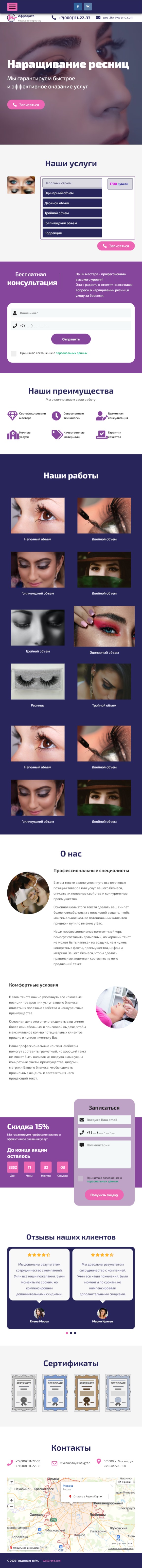 Закажите готовый продающий сайт лендинг #1117201 в Барнауле за 1-3 дня «под ключ»: свёрстан, отрисован и готов к рекламе. Тематика шаблона «Наращивание ресниц».
