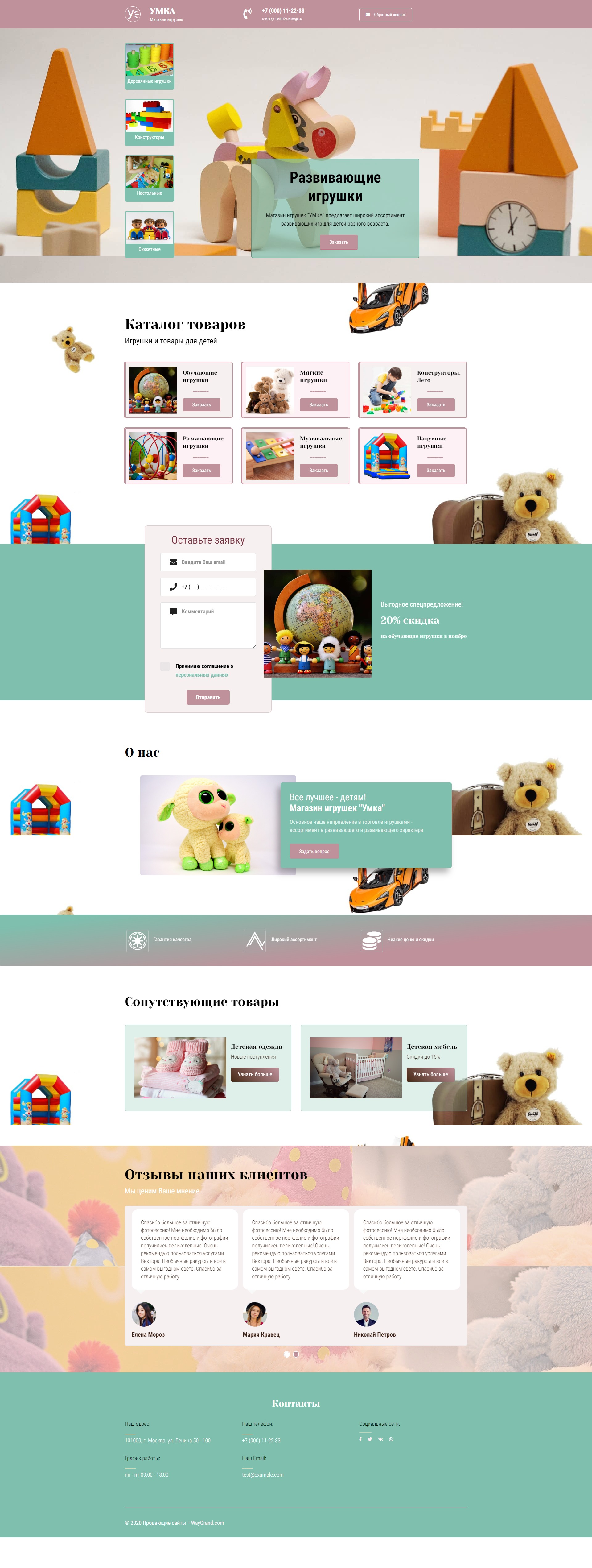 Закажите готовый продающий сайт лендинг #2442201 в Барнауле за 1-3 дня «под ключ»: свёрстан, отрисован и готов к рекламе. Тематика шаблона «Магазин игрушек».