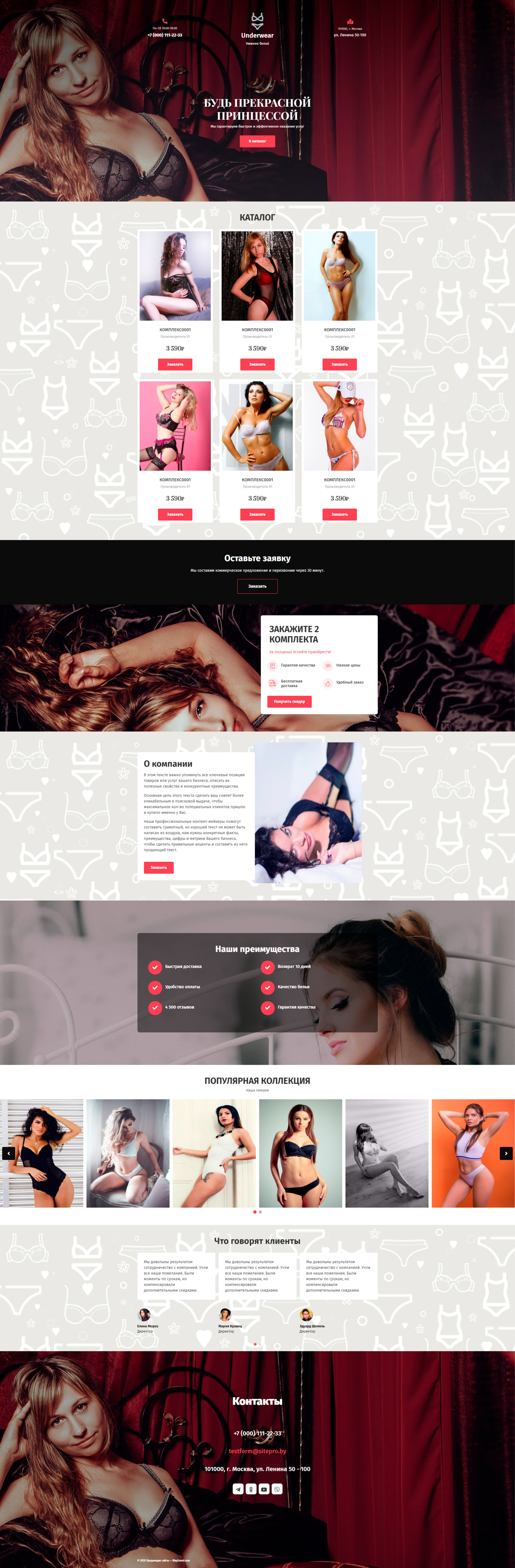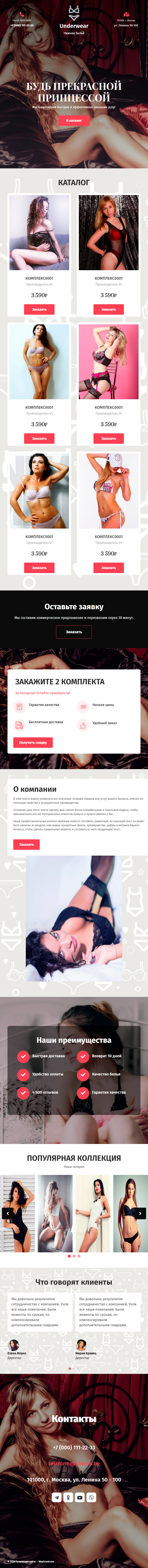 Закажите готовый продающий сайт лендинг #1514201 в Барнауле за 1-3 дня «под ключ»: свёрстан, отрисован и готов к рекламе. Тематика шаблона «Нижнее белье».