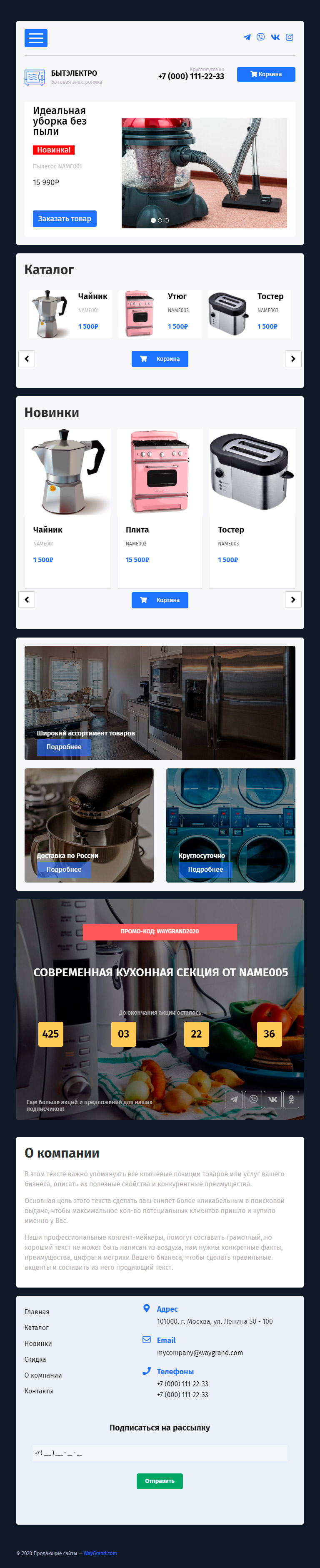 Закажите готовый продающий сайт лендинг #0703202 в Барнауле за 1-3 дня «под ключ»: свёрстан, отрисован и готов к рекламе. Тематика шаблона «Продажа бытовой электроники».