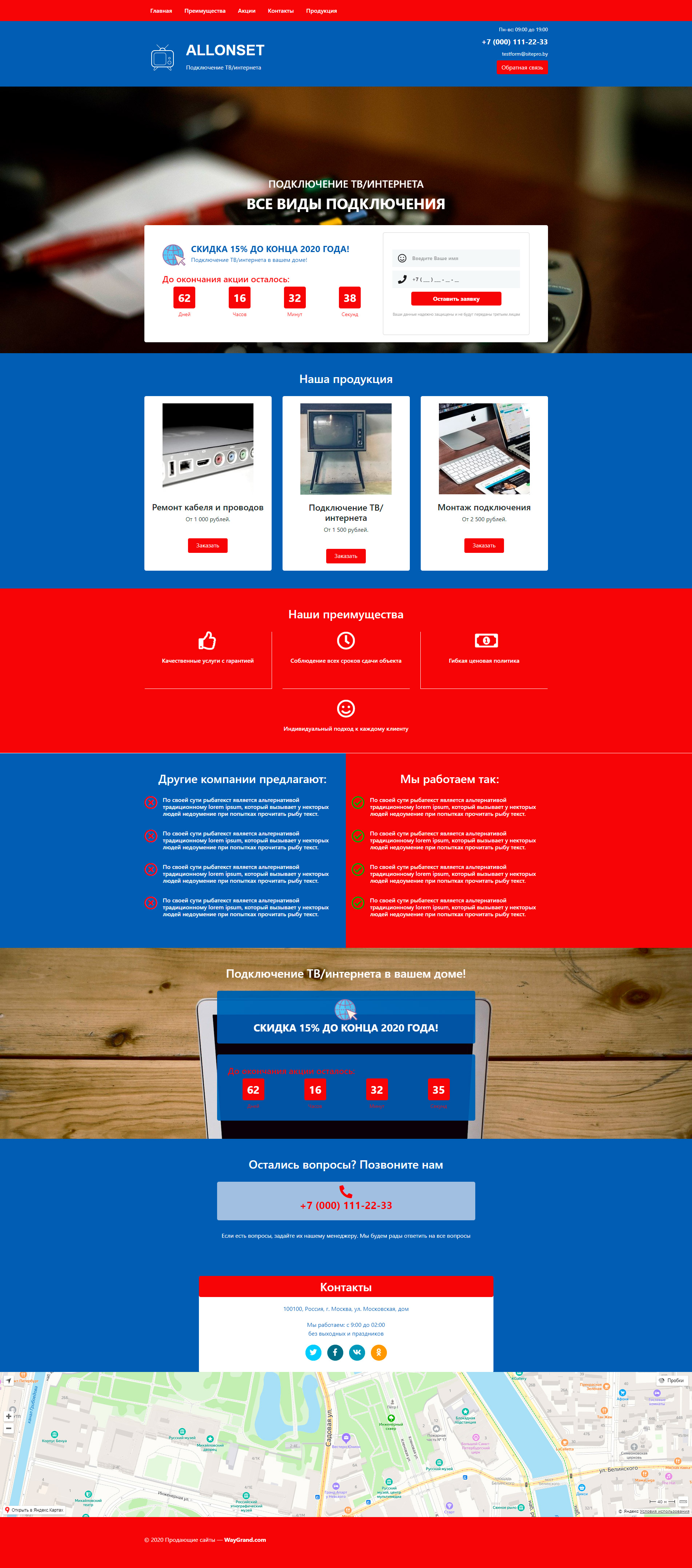 Закажите готовый продающий сайт лендинг #0718201 в Барнауле за 1-3 дня «под ключ»: свёрстан, отрисован и готов к рекламе. Тематика шаблона «Подключение ТВ/интернета».