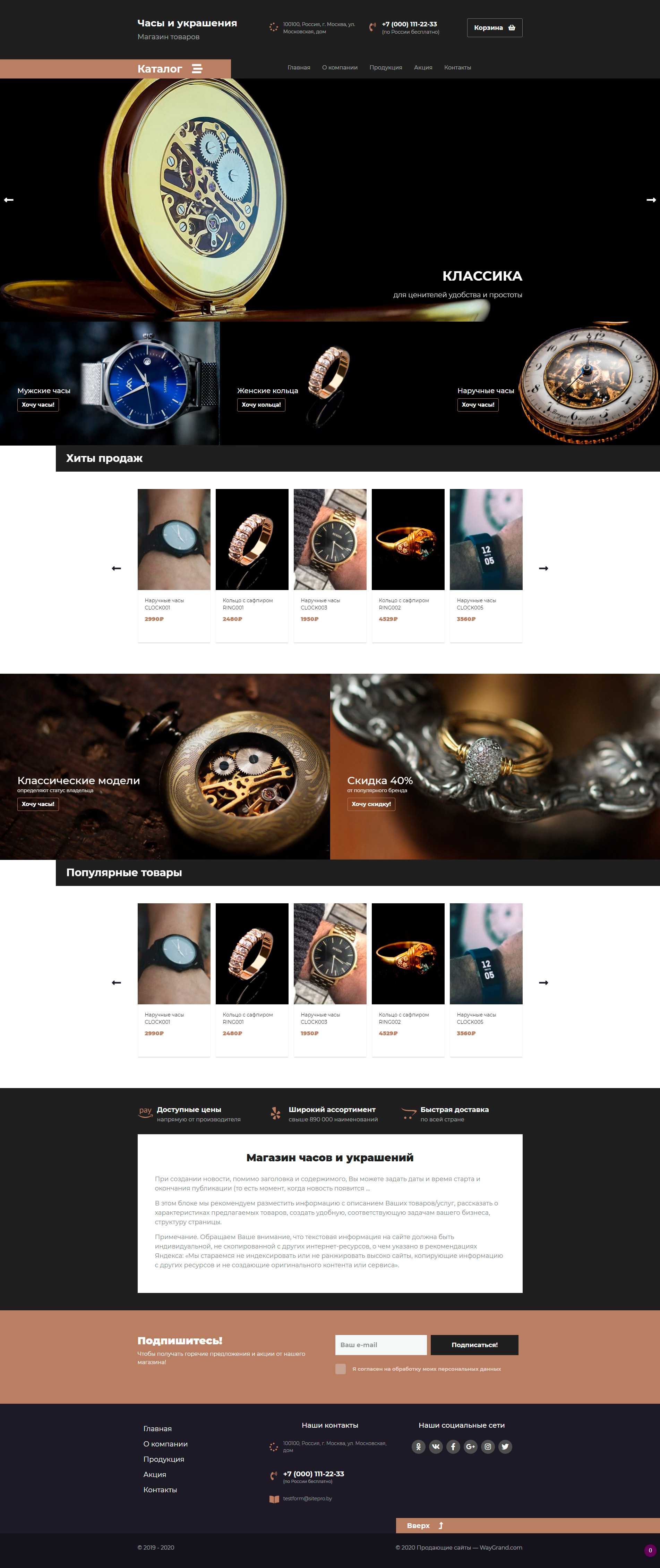 Закажите готовый продающий сайт лендинг #2437201 в Барнауле за 1-3 дня «под ключ»: свёрстан, отрисован и готов к рекламе. Тематика шаблона «Часы и украшения».