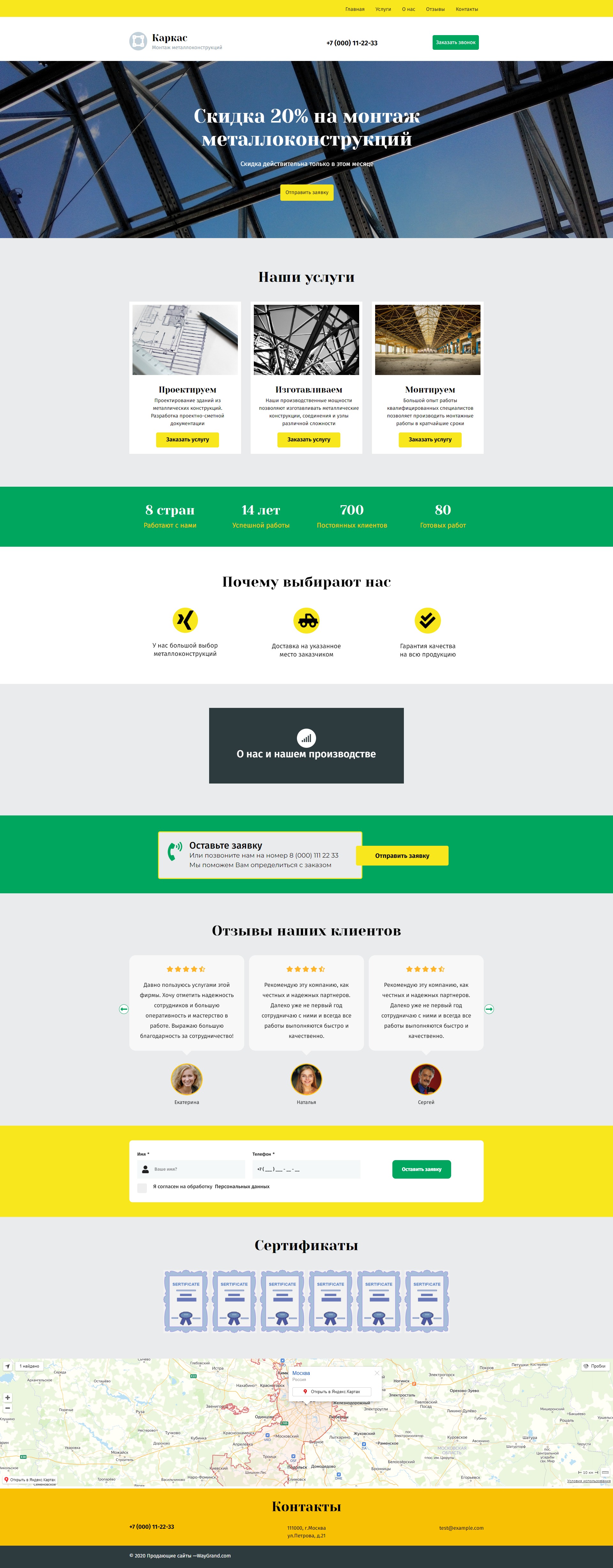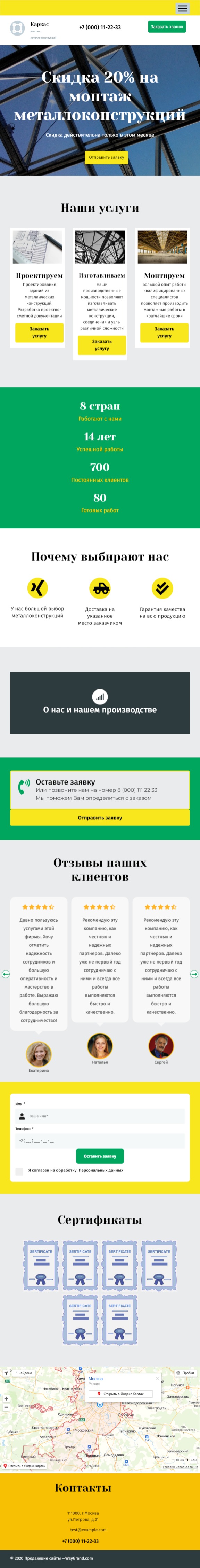 Закажите готовый продающий сайт лендинг #2027201 в Барнауле за 1-3 дня «под ключ»: свёрстан, отрисован и готов к рекламе. Тематика шаблона «Металлоконструкции».
