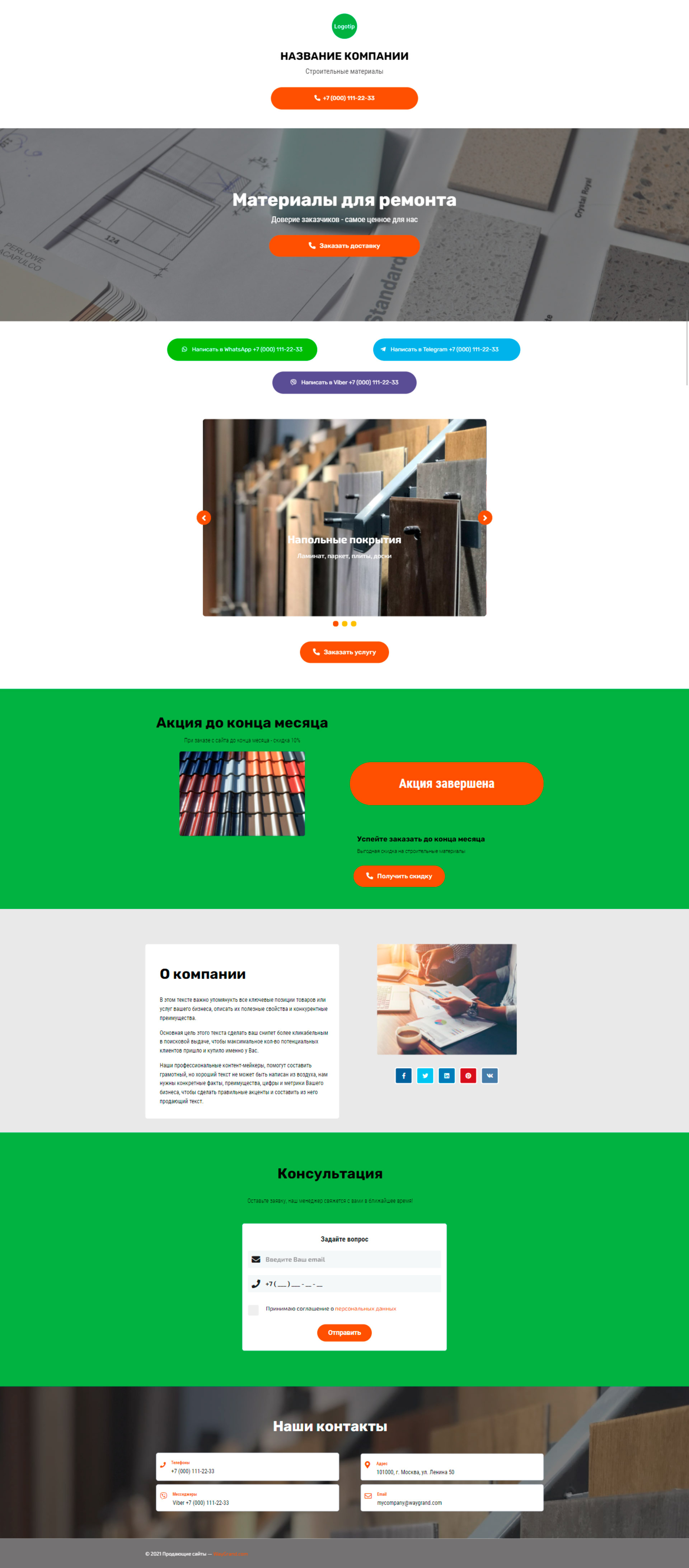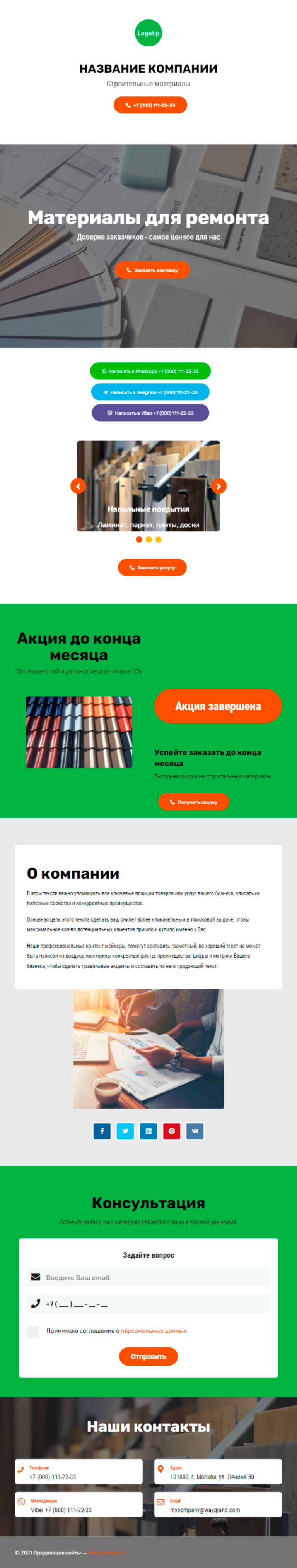 Закажите готовый продающий сайт визитка #2050101 в Барнауле за 5-7 дня «под ключ»: свёрстан, отрисован и готов к рекламе. Тематика шаблона «Строительные материалы».