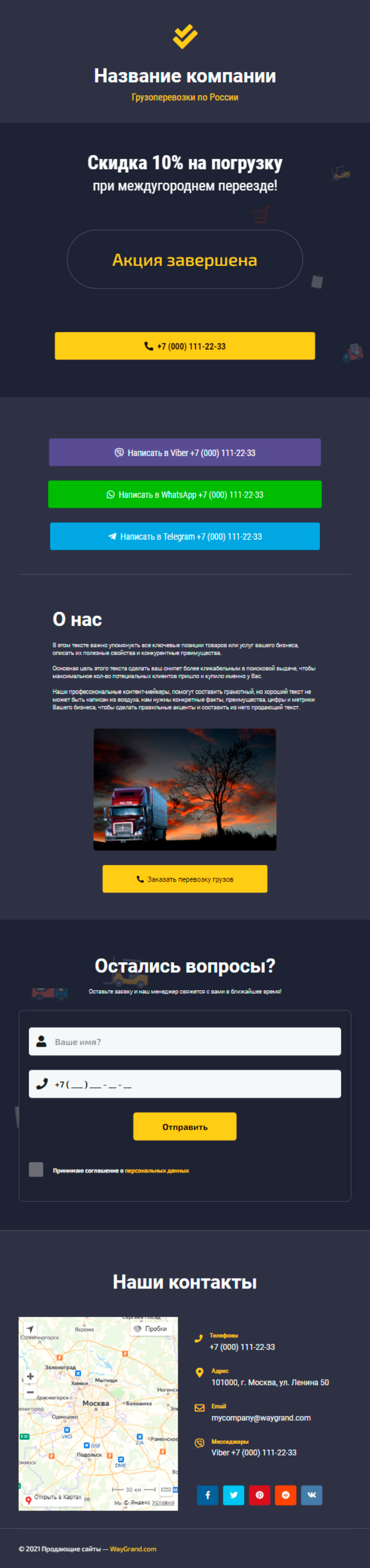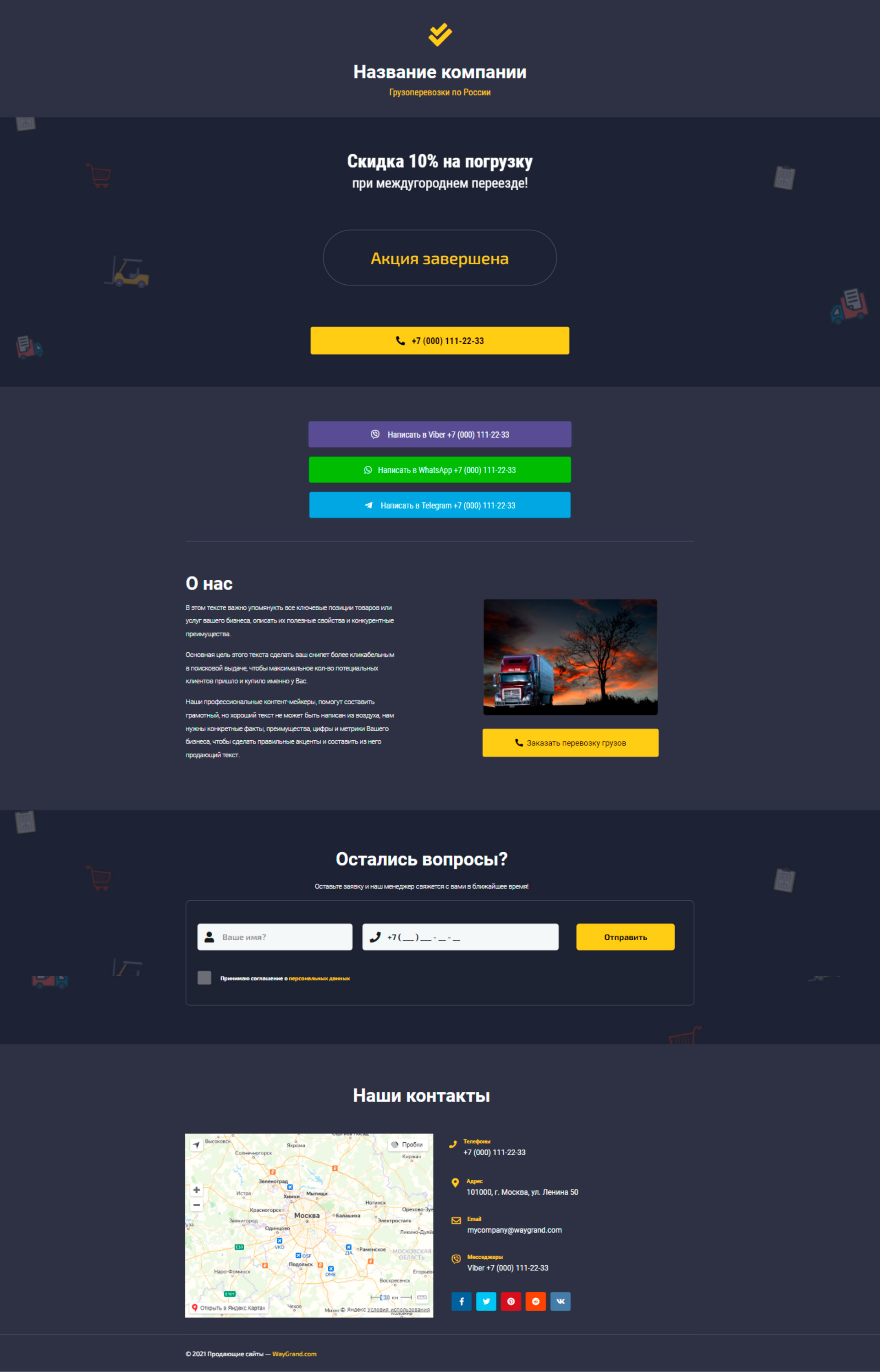 Закажите готовый продающий сайт визитка #2515101 в Барнауле за 5-7 дня «под ключ»: свёрстан, отрисован и готов к рекламе. Тематика шаблона «Грузоперевозки по России».