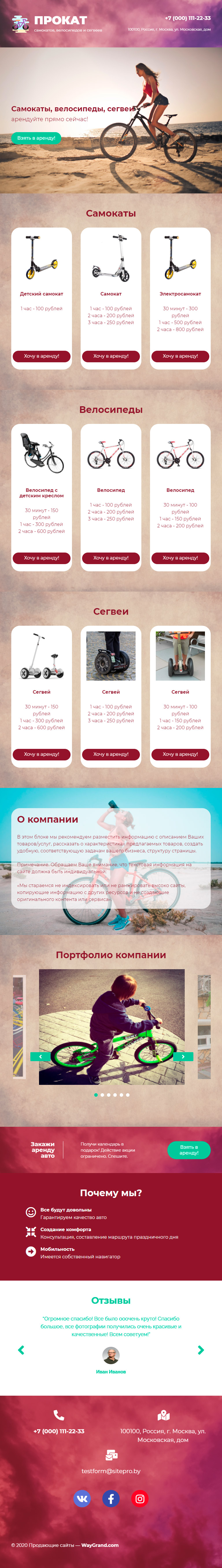 Закажите готовый продающий сайт лендинг #1907201 в Барнауле за 1-3 дня «под ключ»: свёрстан, отрисован и готов к рекламе. Тематика шаблона «Прокат самокатов и велосипедов».