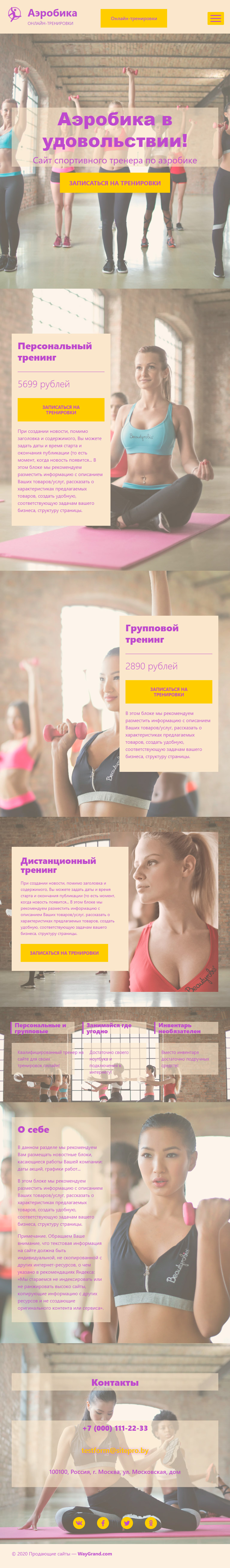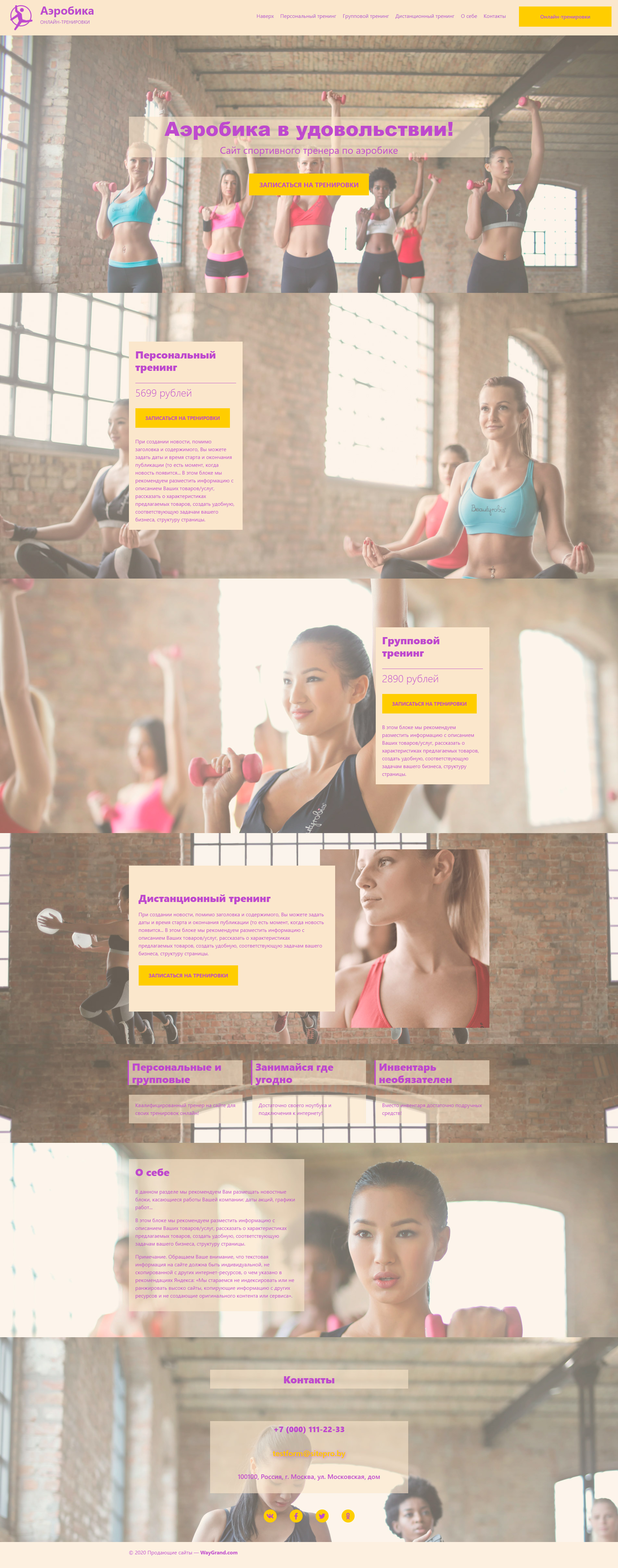 Закажите готовый продающий сайт лендинг #1955207 в Барнауле за 1-3 дня «под ключ»: свёрстан, отрисован и готов к рекламе. Тематика шаблона «Аэробика онлайн тренировки».