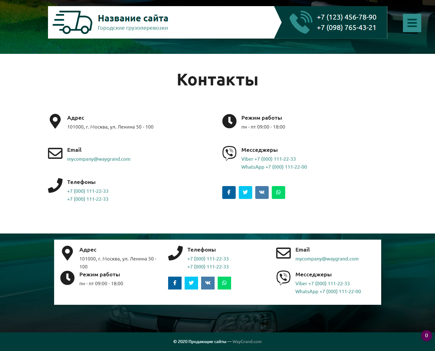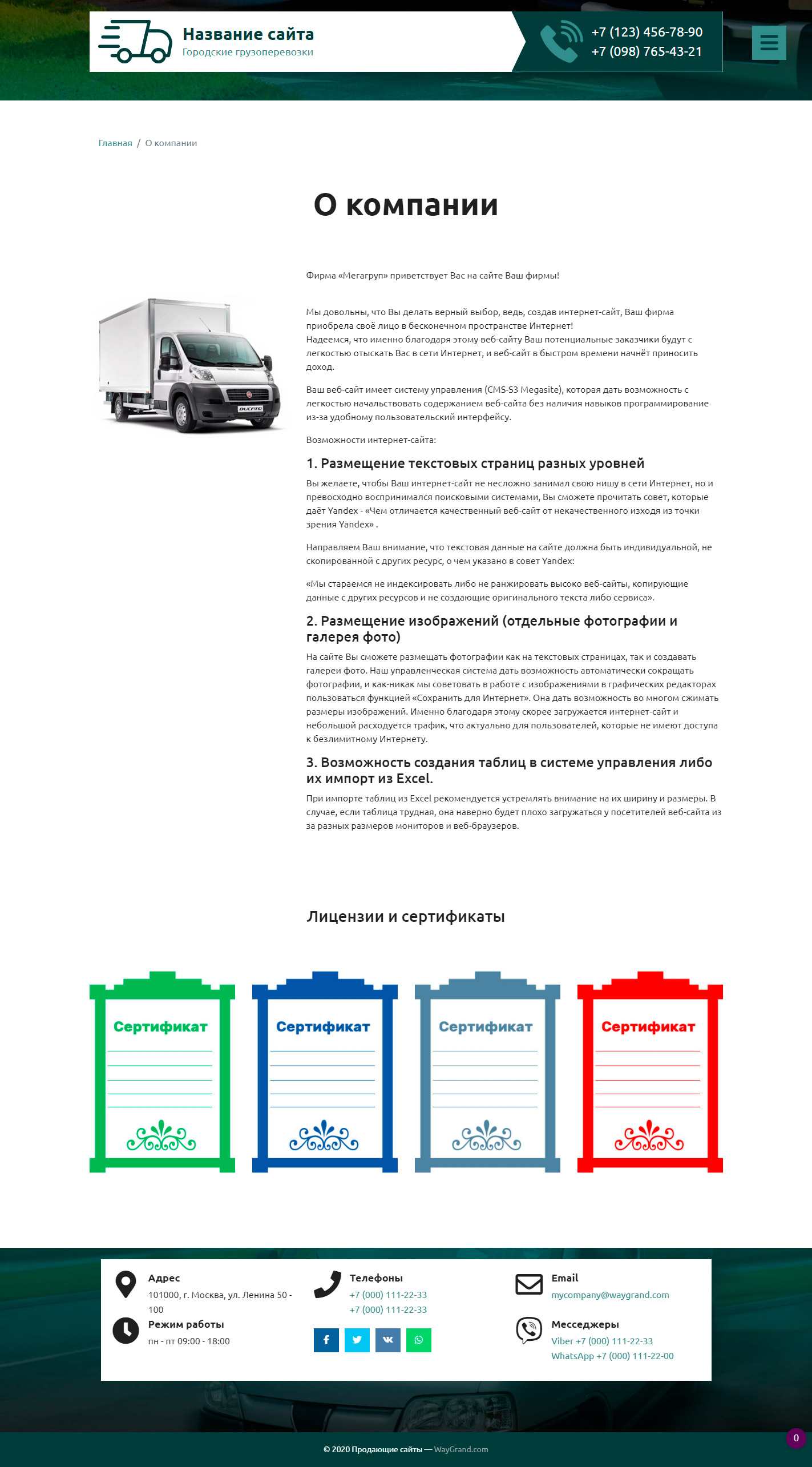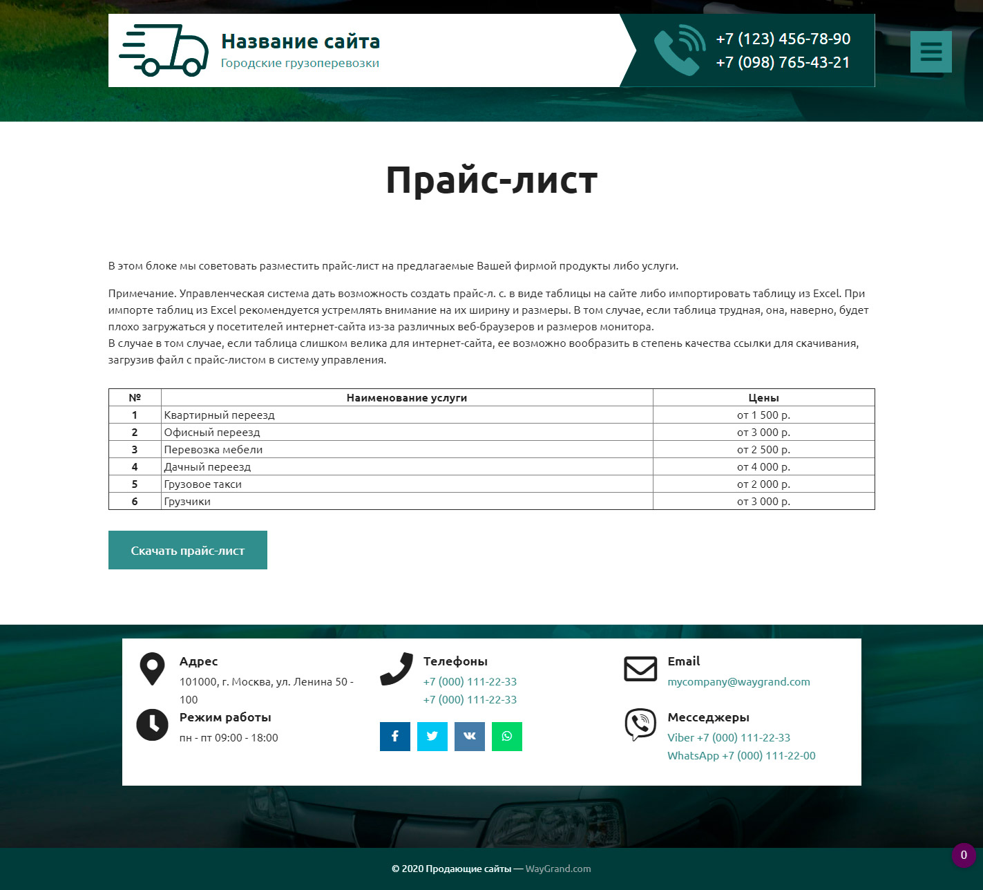 Закажите готовый продающий сайт визитка #2515302 в Барнауле за 5-7 дня «под ключ» по доступным ценам на WayGrand: свёрстан, отрисован и готов к рекламе. Тематика шаблона «Городские грузоперевозки».