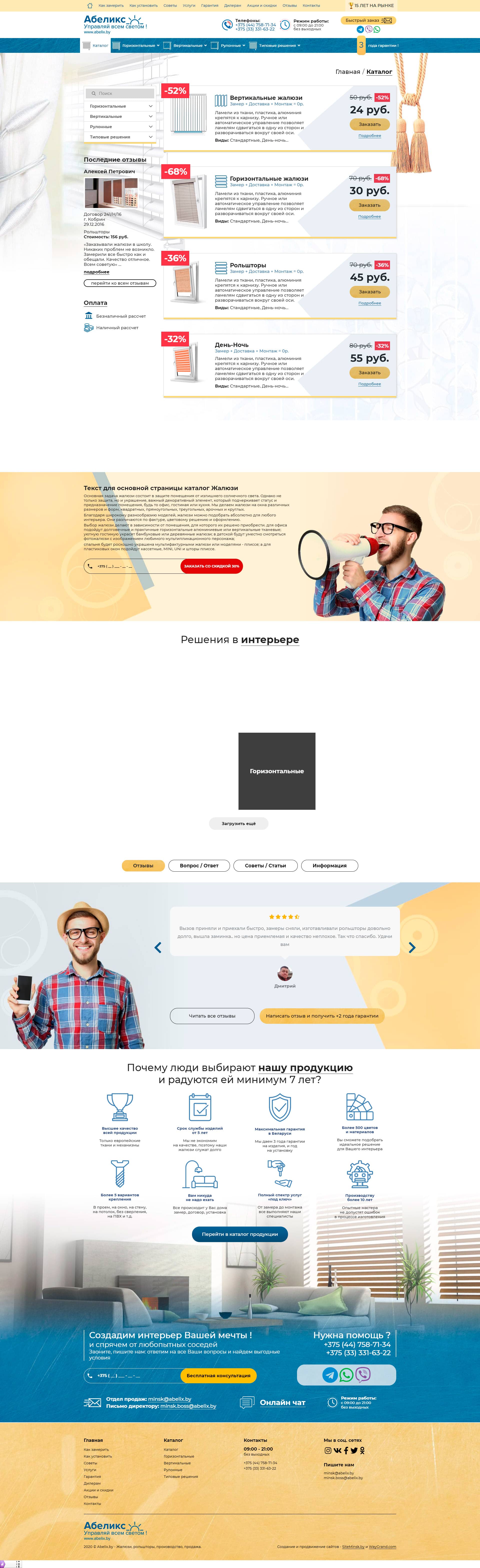 Разработали авторский сайт по тематике жалюзи и рольшторы под заказ за 35 дней.
