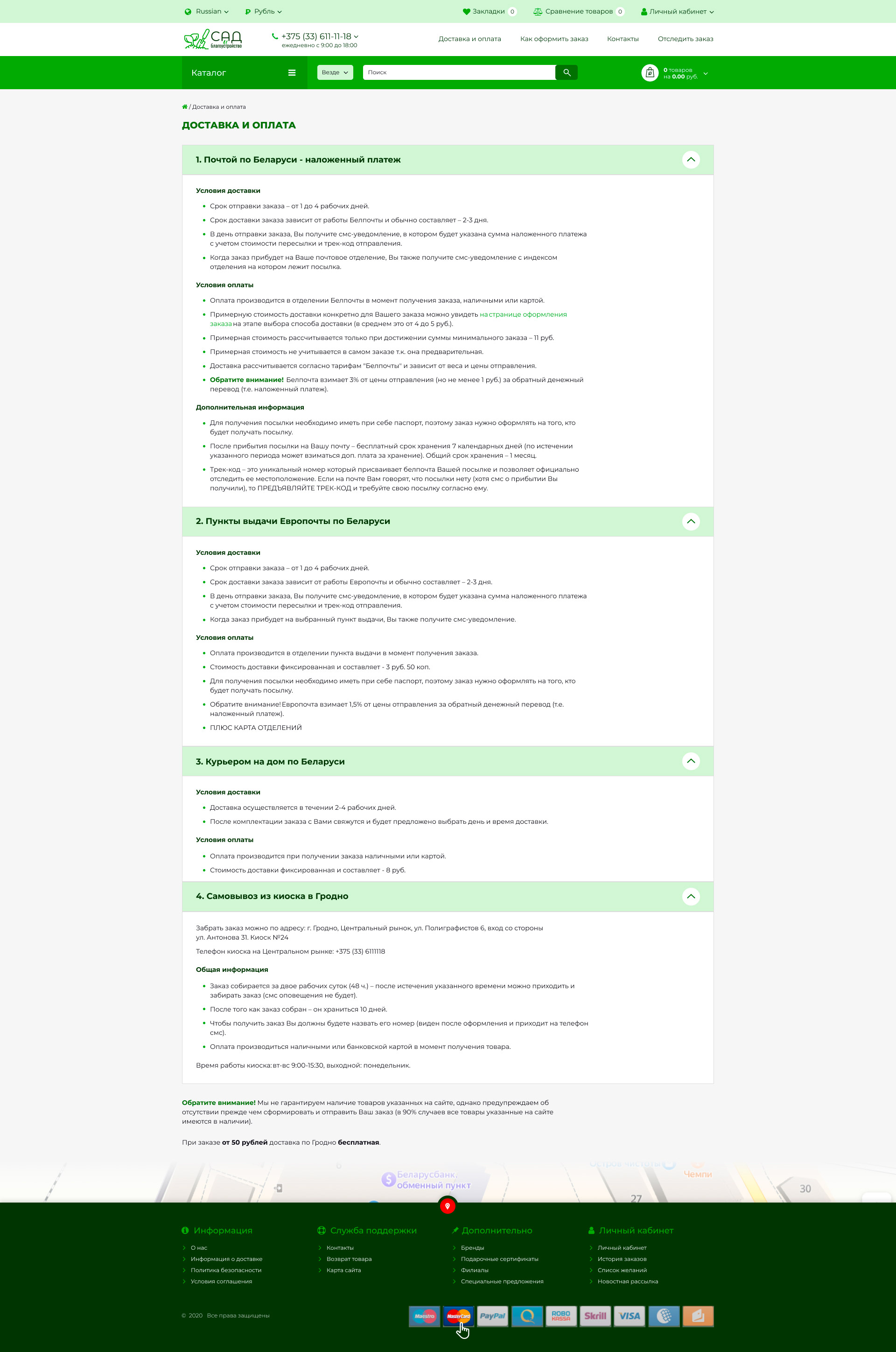 - Страница "Оплата и доставка"