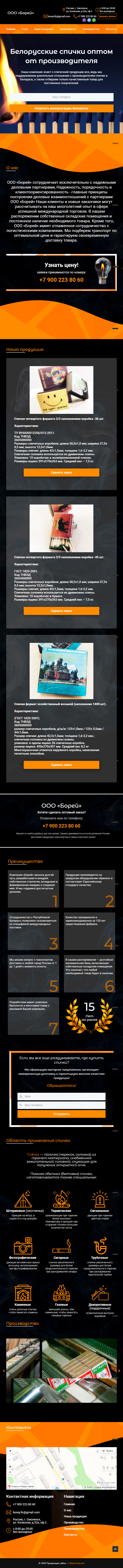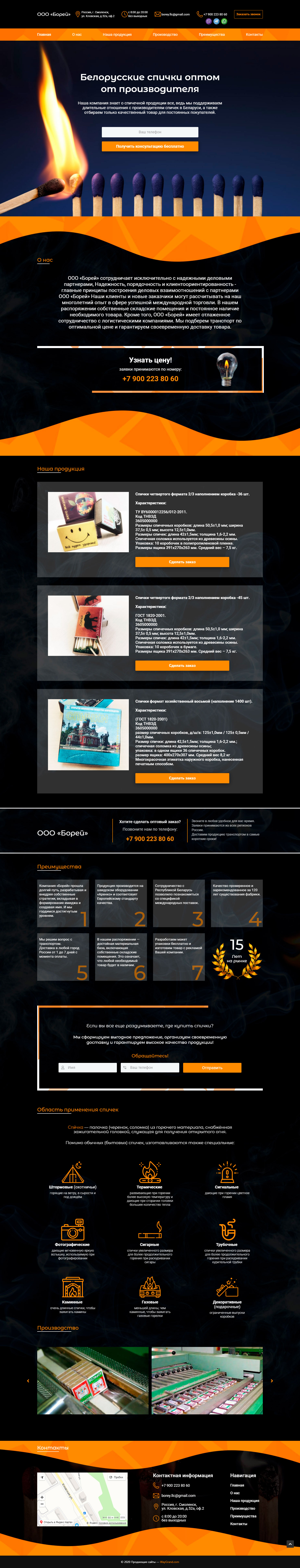 Закажите готовый продающий сайт лендинг #115 в Барнауле за 1-3 дня «под ключ»: свёрстан, отрисован и готов к рекламе. Тематика шаблона «Белорусские спички оптом от производителя».