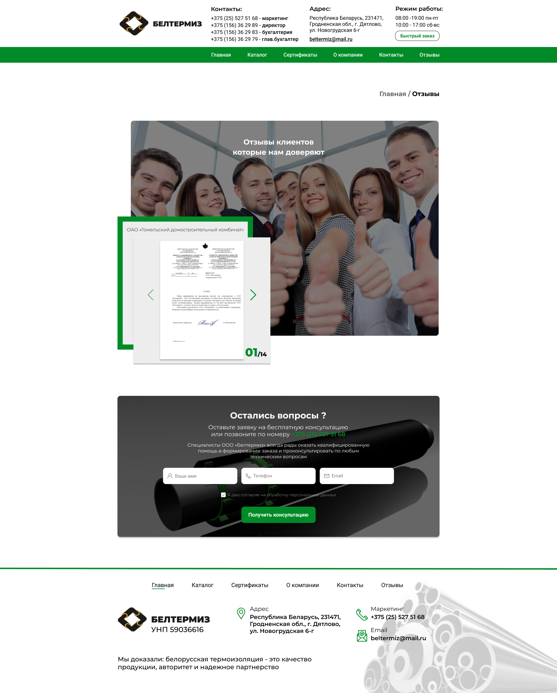 - Страница "Отзывы"