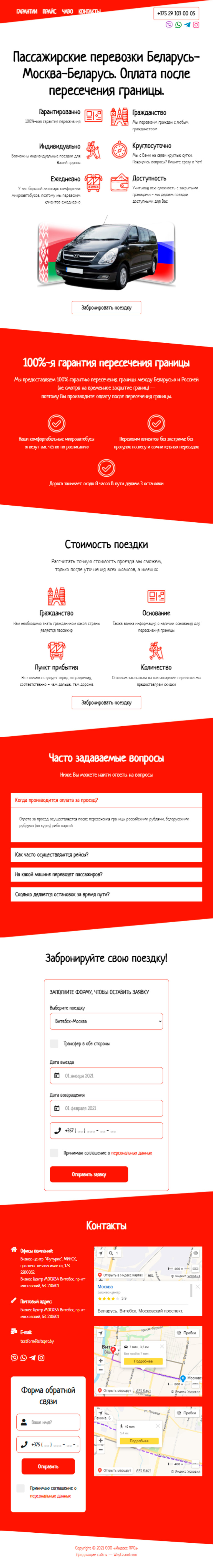 Закажите готовый продающий сайт лендинг #2528201 в Барнауле за 1-3 дня «под ключ»: свёрстан, отрисован и готов к рекламе. Тематика шаблона «Пассажирские перевозки Беларусь-Москва-Беларусь».